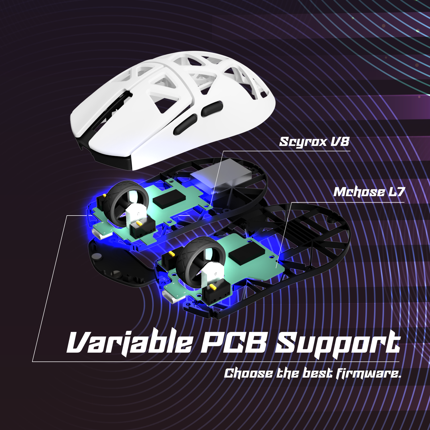 Worried about firmware issues? Jaeger supports PCBs from Mchose, ATK, and Scyrox. And new boards can be added too! Build the perfect mouse with the firmware you trust.